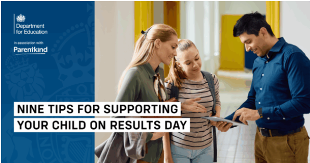See the tips from Parentkind, the Department of Education have released on how to support your child on results day on both A Level and GCSE Results Day