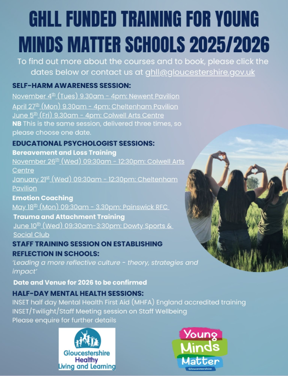 For more information on the YMM training offer and ways GHLL can support you as a YMM school, please contact ghll@gloucestershire.gov.uk or Nicky Witcomb nicky.witcomb@gloucestershire.gov.uk
