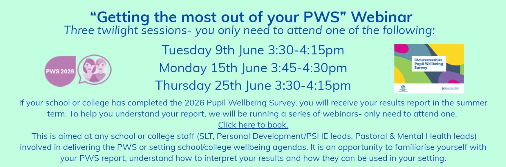 The Pupil Wellbeing Survey (PWS) is a free, anonymous, confidential, longitudinal survey that has been running since 2006 across schools and colleges in Gloucestershire. This year’s survey is being delivered by Gloucestershire County Council (GCC) to offer a more responsive user experience for all respondents.